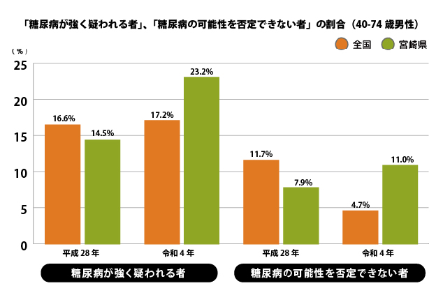 | 糖尿病の可能性を否定できない者 | 11.7% | 4.7% | 7.9% | 11.0% |