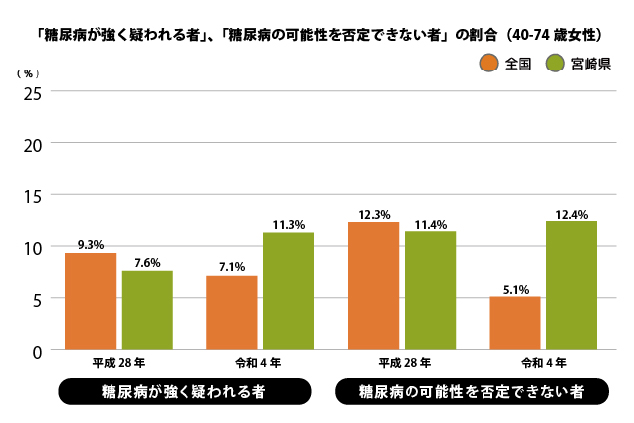 | 糖尿病の可能性を否定できない者 | 12.3% | 5.1% | 11.4% | 12.4% |