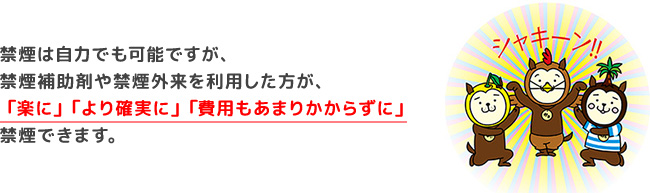 禁煙治療 禁煙治療 保険適用の流れ 禁煙治療の流れ 上手に禁煙するために 禁煙治療を利用すると 1 比較的楽にやめられる 2 より確実にやめられる 薬や禁煙治療による禁煙成功率は自力に比べて3~4倍アップします。 3 あまりお金をかけずにやめられる 保険による禁煙治療は、たばこ代に比べて安い(いずれも12週間分の費用で比較) (出典) 禁煙支援マニュアル(第二版)増補改訂版(厚生労働省) 禁煙治療の流れ